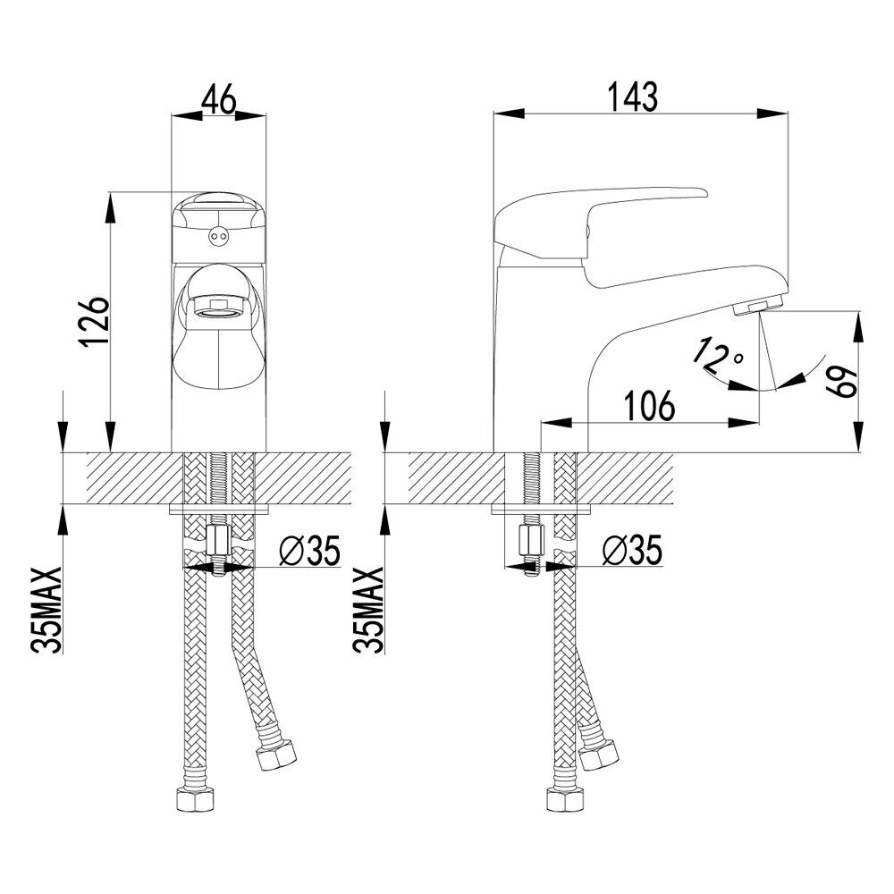 Смеситель для раковины с коротким изливом, гибкая подводка 35см, хром (Lemark LM3306C)