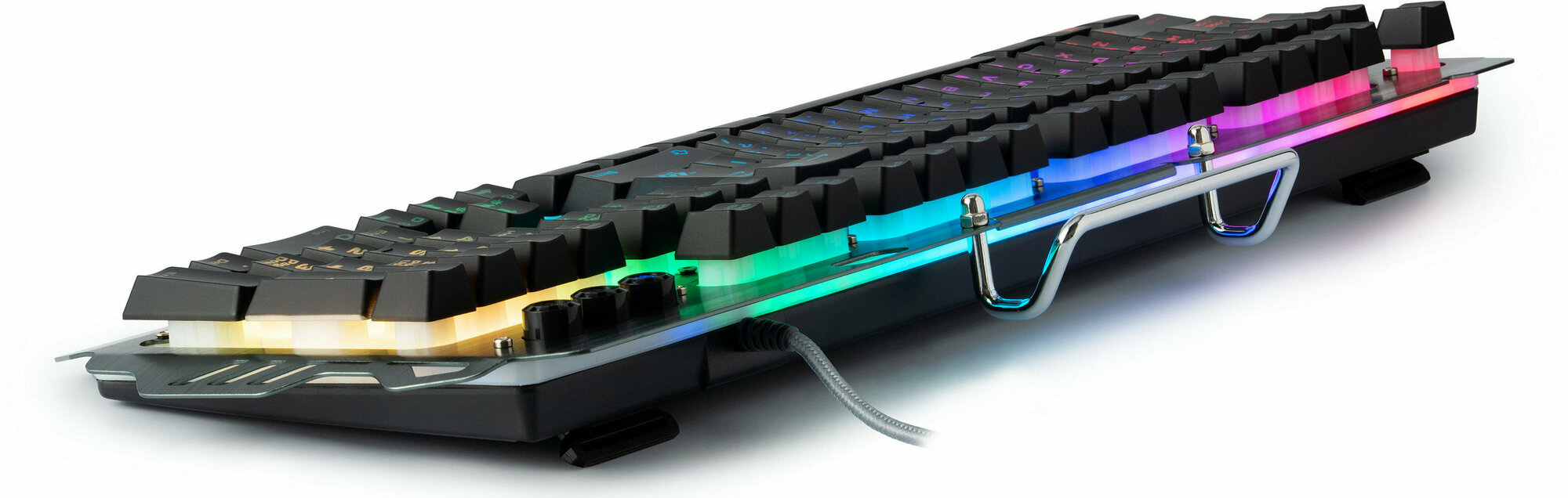 Светится очень круто (плюс за количество режимов, хотя мне лично, наверное, хватило бы только пары). Есть подставка под телефон или планшет. Изначально выбирала между этой моделью и Химерой, брутальность Renegade победила. Выглядит очень необычно, как будто это только скелет клавиатуры. Дополнительный плюс - крошки не забиваются ? |