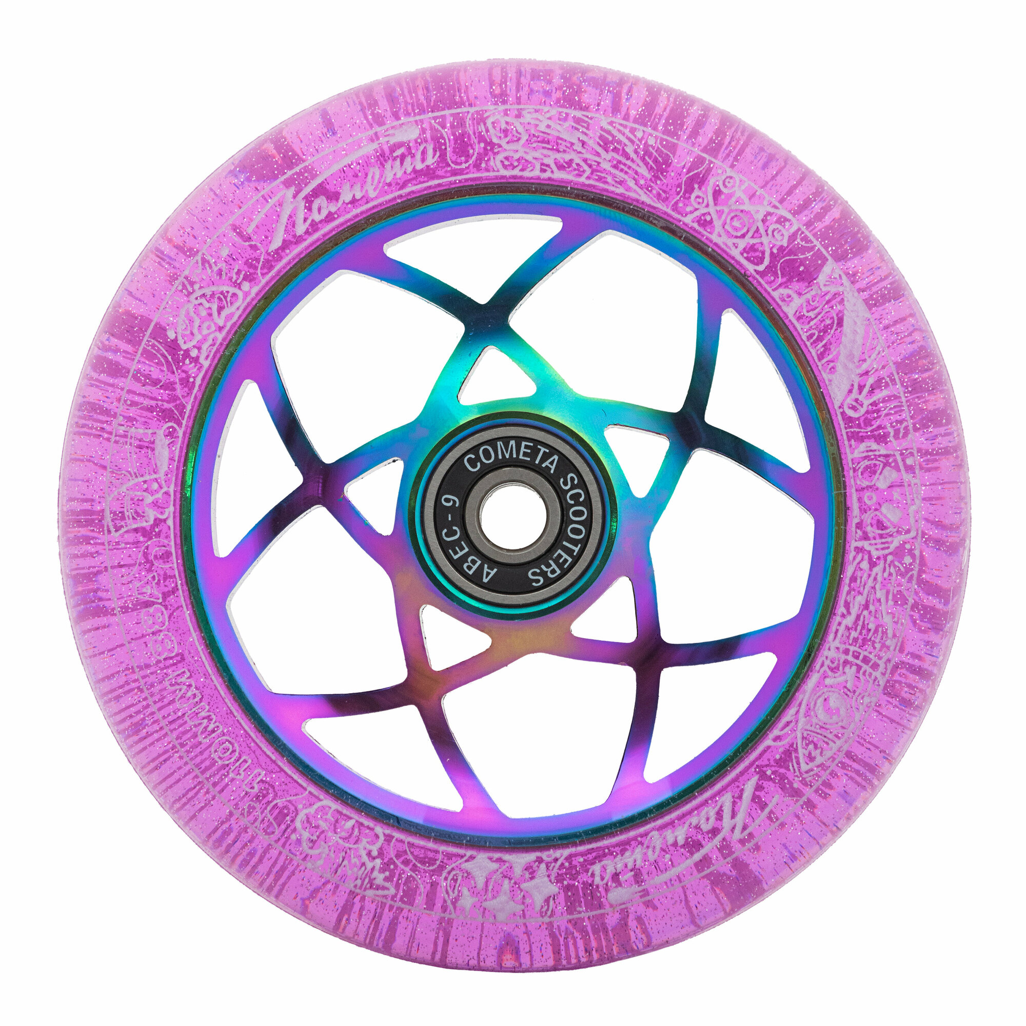 Купить Колесо д/сам. Комета Атом Фиолетовый с блёстками / Неохром