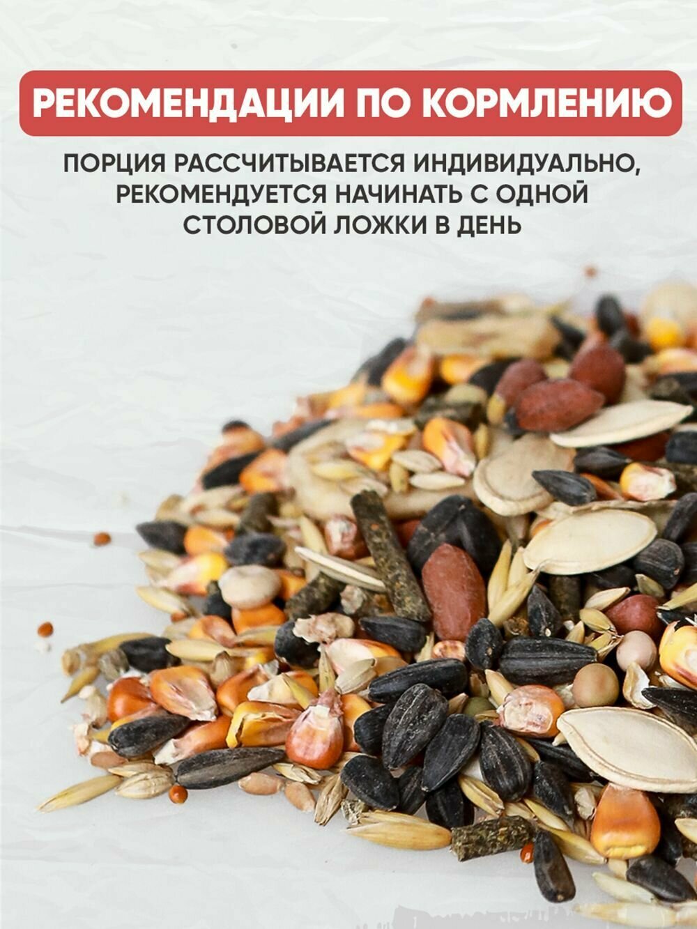 | Состав | Пшеница мягких сортов, ячмень, кукуруза, горох, семечки подсолнечника, просо, витаминный комплекс, люцерна в гранулах, сено люпин, арахис, сухофрукты, овес, семечки тыквенные, сушенный банан |