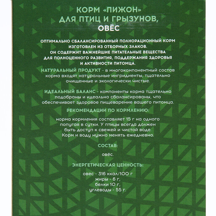 Корм "Пижон" овёс, для птиц и грызунов, 250 г интересное: