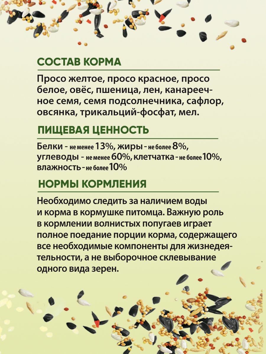 Корм для волнистых попугаев с кальцием 500 гр интересное: