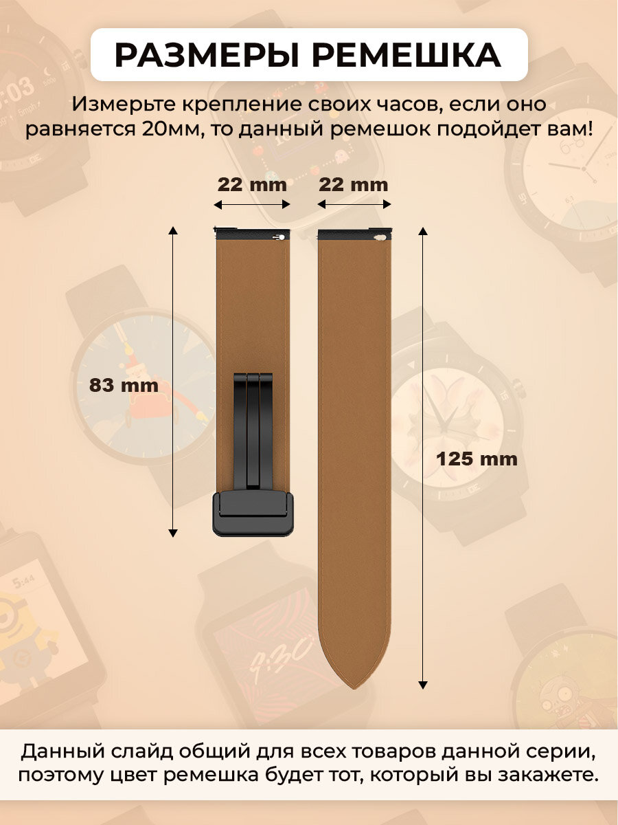 Универсальный кожаный ремешок 20мм, коричневый интересное:
