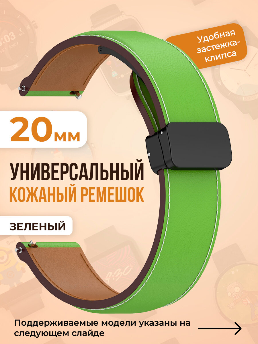 Универсальный кожаный ремешок 20мм, зеленый интересное: