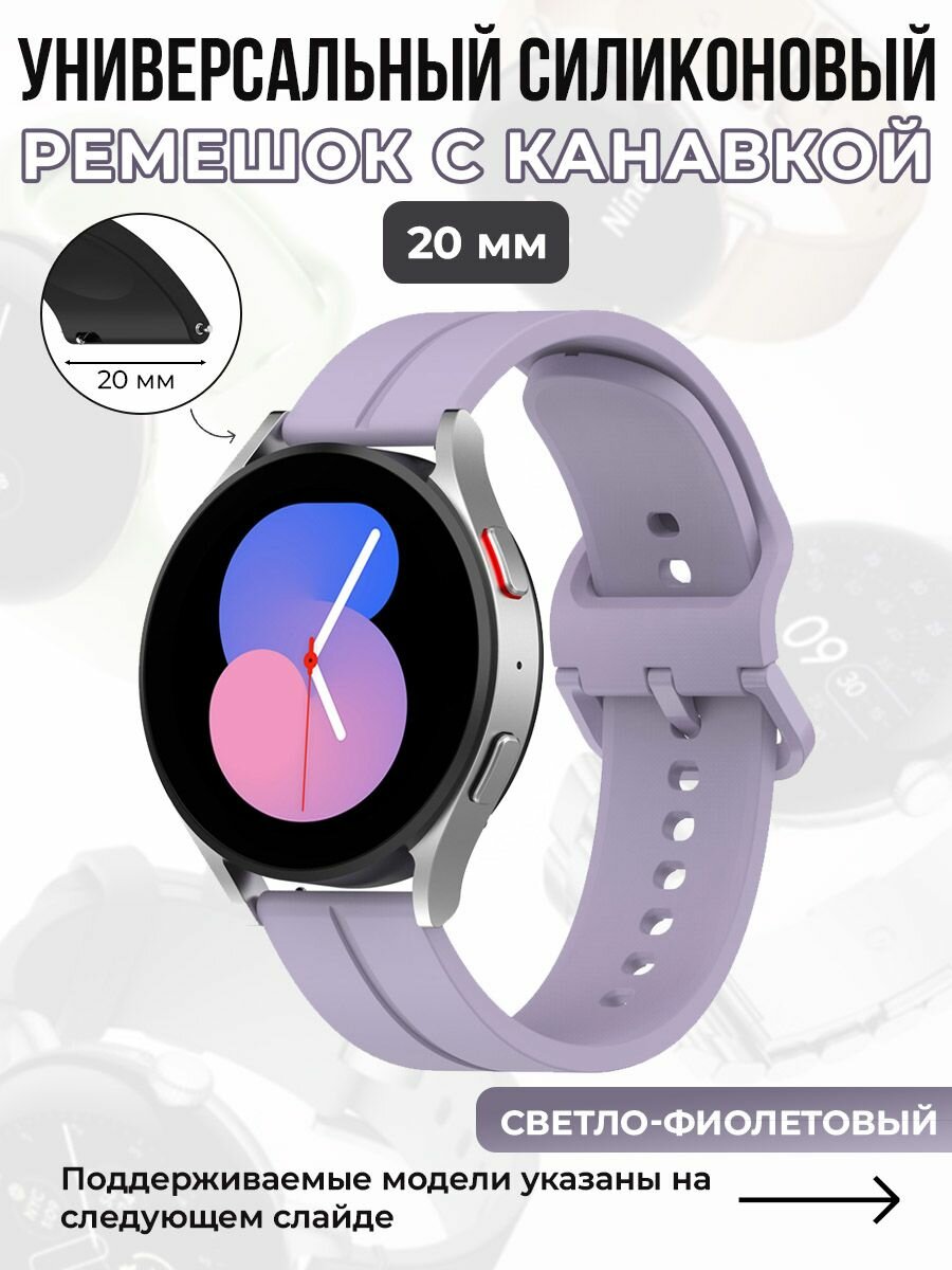 Купить Универсальный силиконовый ремешок с канавкой 20 мм, светло-фиолетовый