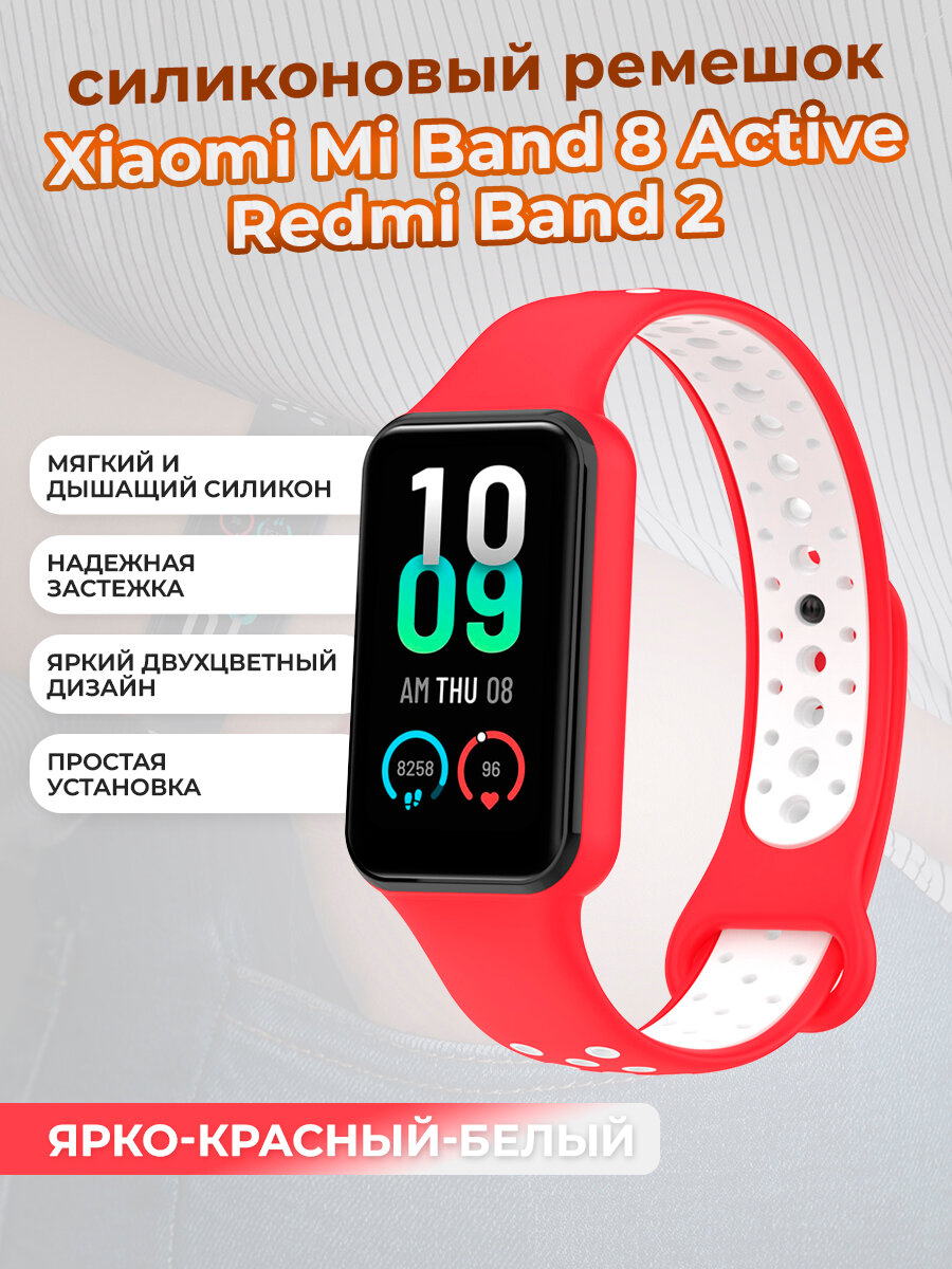 СохранитьДвухцветный ремешок для Xiaomi Mi Band 8 Active / Redmi Band 2, ярко-красный-белый интересное: