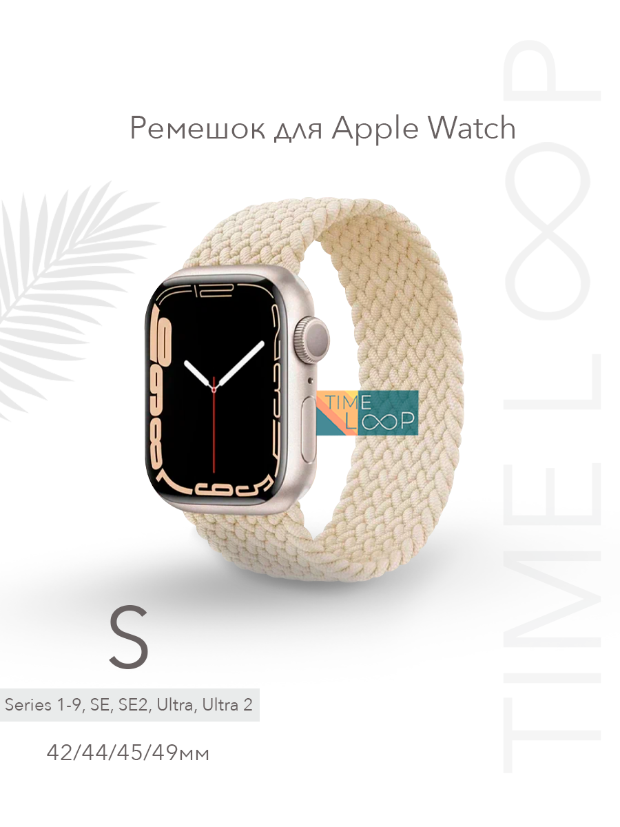 Купить Нейлоновый ремешок для Apple Watch Series 1-9, SE, SE 2 и Ultra, Ultra 2; смарт часов 42 mm / 44 mm / 45 mm /49 mm; размер S (145 mm), бежевый