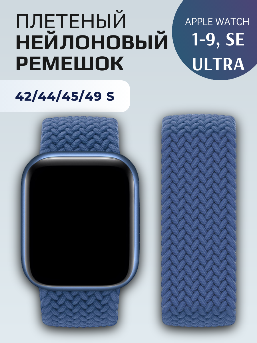 Купить Нейлоновый ремешок для Apple Watch Series 1-9, SE, SE 2 и Ultra, Ultra 2; смарт часов 42 mm / 44 mm / 45 mm /49 mm; размер S (145 mm), синий