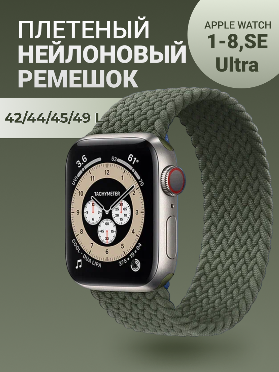 Купить Нейлоновый ремешок для Apple Watch Series 1-9, SE, SE 2 и Ultra, Ultra 2; смарт часов 42 mm / 44 mm / 45 mm /49 mm; размер L (165 mm), оливковый