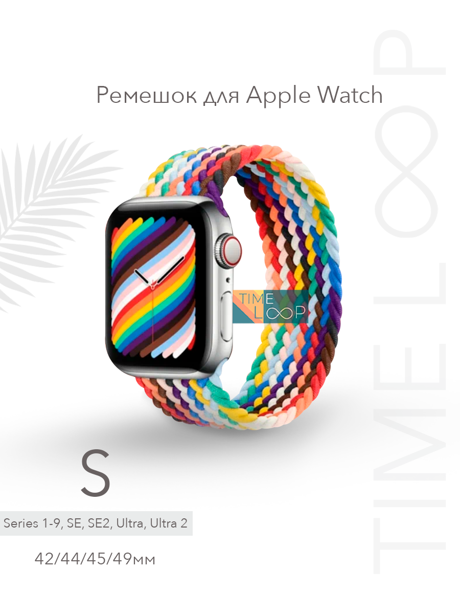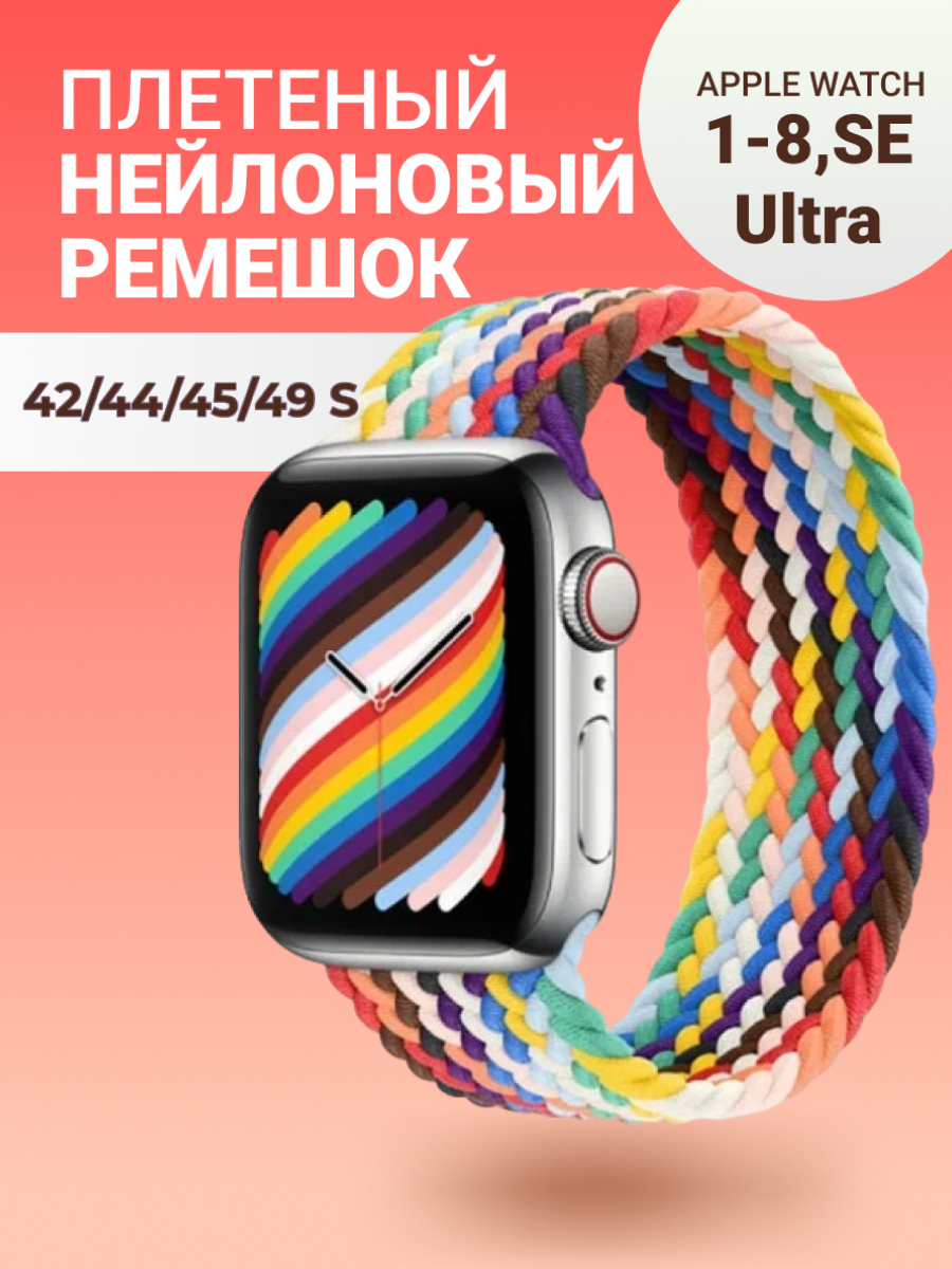 Купить Нейлоновый ремешок для Apple Watch Series 1-9, SE, SE 2 и Ultra, Ultra 2; смарт часов 42 mm / 44 mm / 45 mm /49 mm; размер S (145 mm), радуга