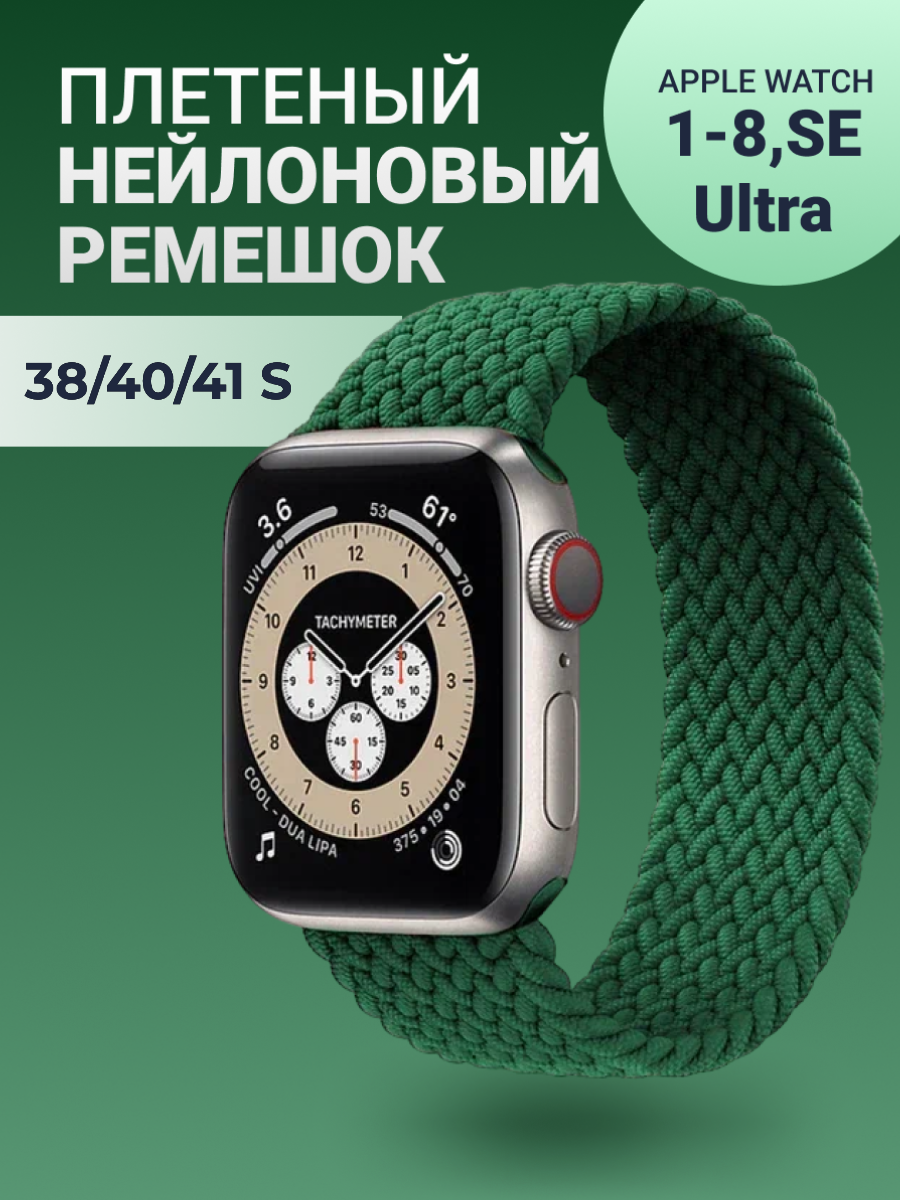 СохранитьНейлоновый ремешок для Apple Watch Series 1-9, SE, SE 2 и Ultra, Ultra 2; смарт часов 38 mm / 40 mm / 41 mm; размер S (135 mm); зеленый интересное: