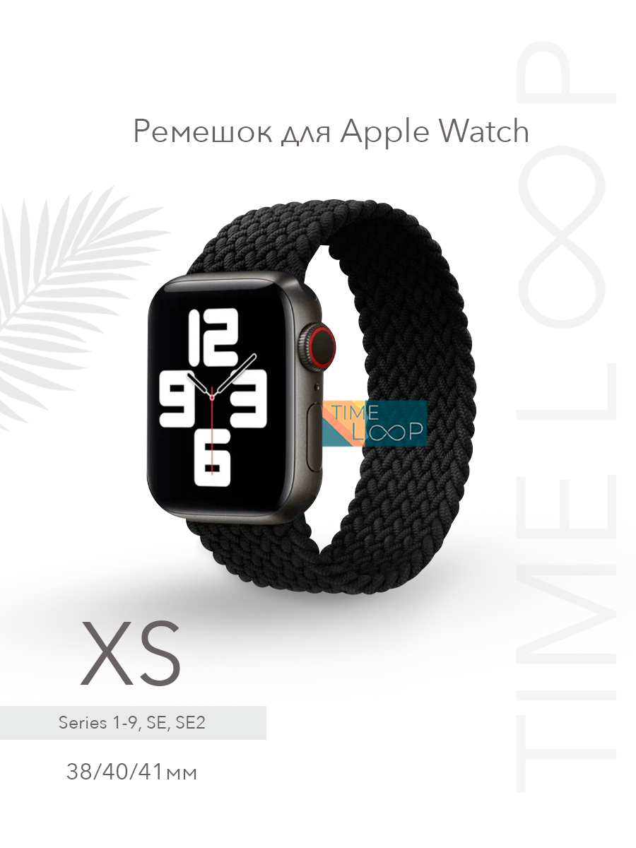 Купить Нейлоновый ремешок для Apple Watch Series 1-9, SE, SE 2 и Ultra, Ultra 2; смарт часов 38 mm / 40 mm / 41 mm; размер XS (125 mm); черный