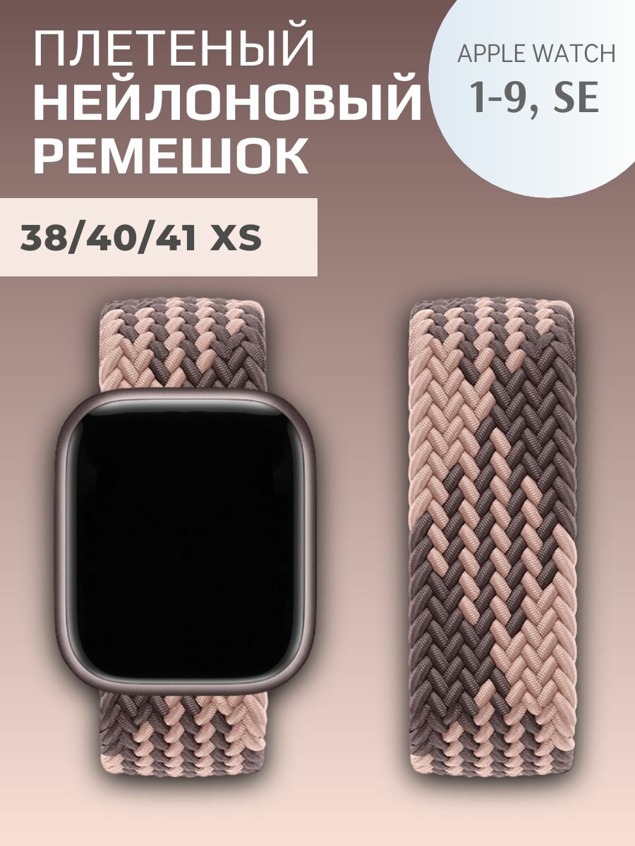 Ремешок тканевый плетеный браслет для Apple Watch Series 1-9, SE, SE 2 и Ultra, Ultra 2; смарт часов 38 mm 40 mm 41 mm; размер XS (125 mm)