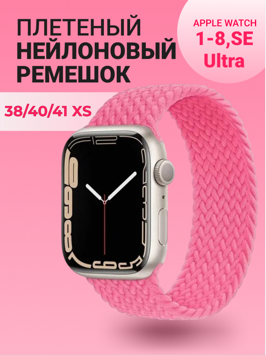 Купить Нейлоновый ремешок для Apple Watch Series 1-9, SE, SE 2 и Ultra, Ultra 2; смарт часов 38 mm / 40 mm / 41 mm; размер XS (125 mm); розовый