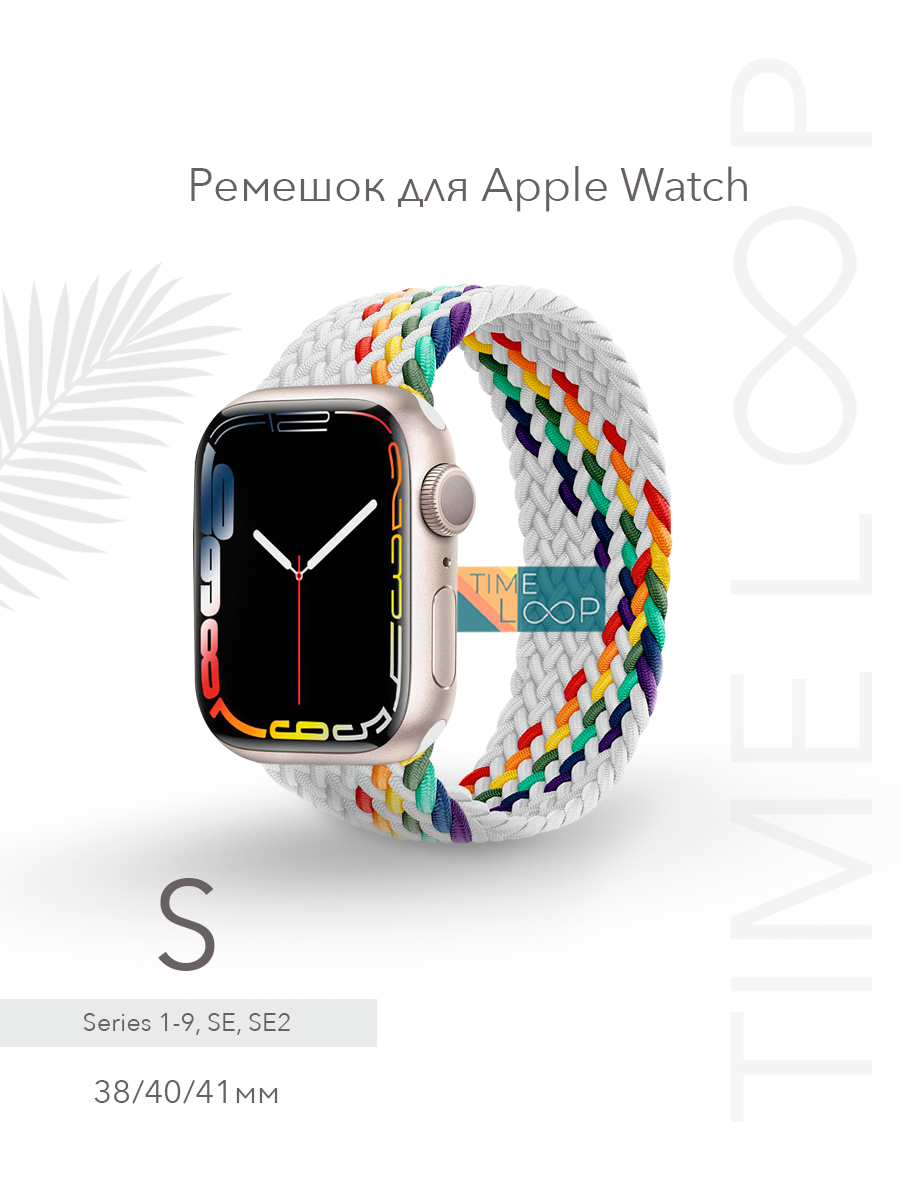 Нейлоновый ремешок для Apple Watch Series 1-9, SE, SE 2 и Ultra, Ultra 2; смарт часов 38 mm / 40 mm / 41 mm; размер S (135 mm); радуга