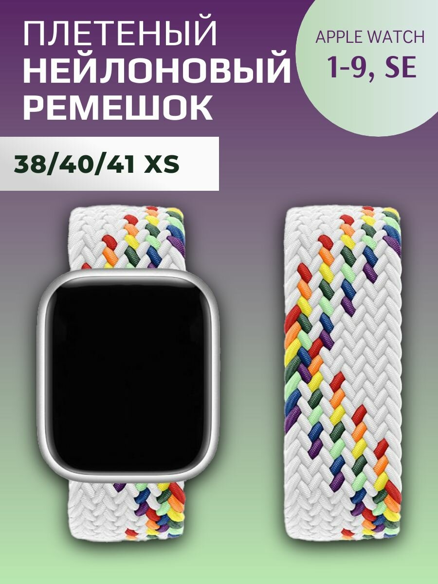 Нейлоновый ремешок для Apple Watch Series 1-9, SE, SE 2 и Ultra, Ultra 2; смарт часов 38 mm / 40 mm / 41 mm; размер XS (125 mm); радуга