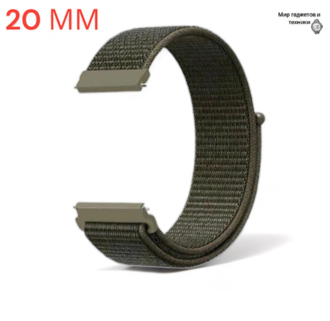 Купить Универсальный нейлоновый Nylon ремешок 20 мм для часов Samsung Galaxy Watch, Huawei Watch, Honor, Xiaomi Amazfit и Garmin, хаки
