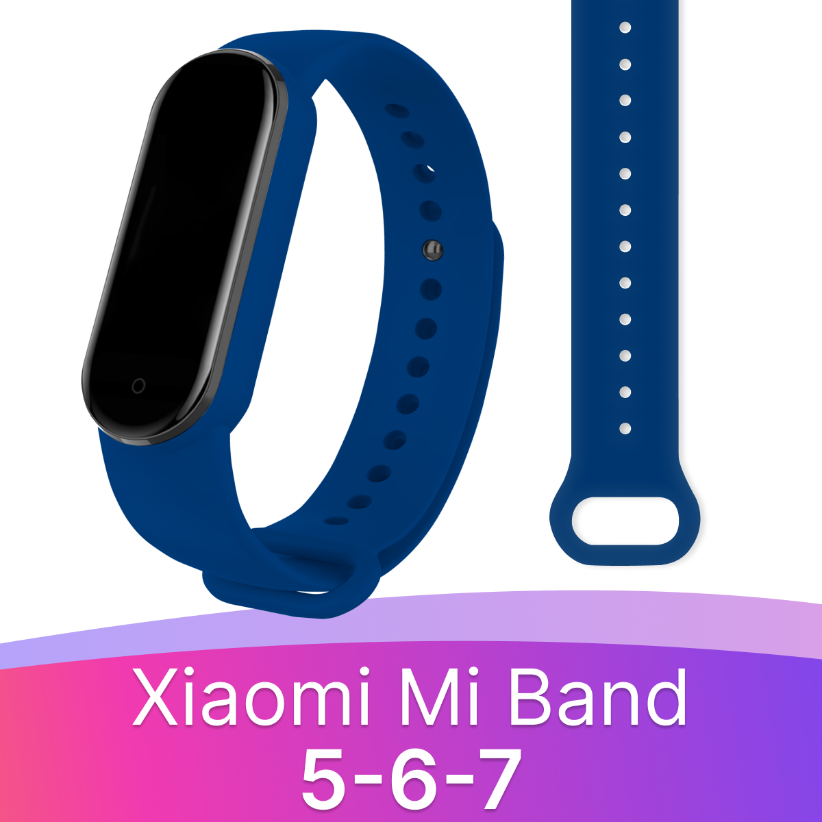 Купить Силиконовый ремешок для фитнес-трекера Xiaomi Mi Band 5, 6 и 7 / Спортивный браслет на смарт часы Сяоми Ми Бэнд 5, 6 и 7 / Синий