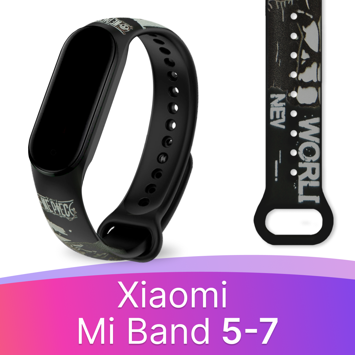 Купить Силиконовый ремешок для смарт часов Xiaomi Mi Band 5, 6 и 7 / Спортивный сменный браслет на фитнес трекер Сяоми Ми Бэнд 5, 6, 7 / Аниме