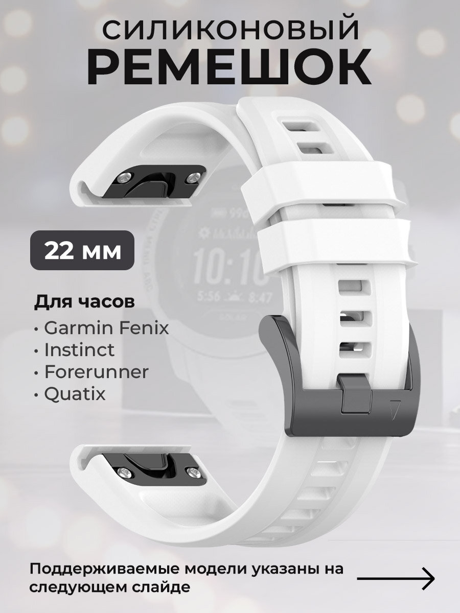 Купить Силиконовый ремешок для Garmin Fenix / Instinct / Forerunner / Quatix, 22 мм, c металлическим фиксатором и баклей, белый