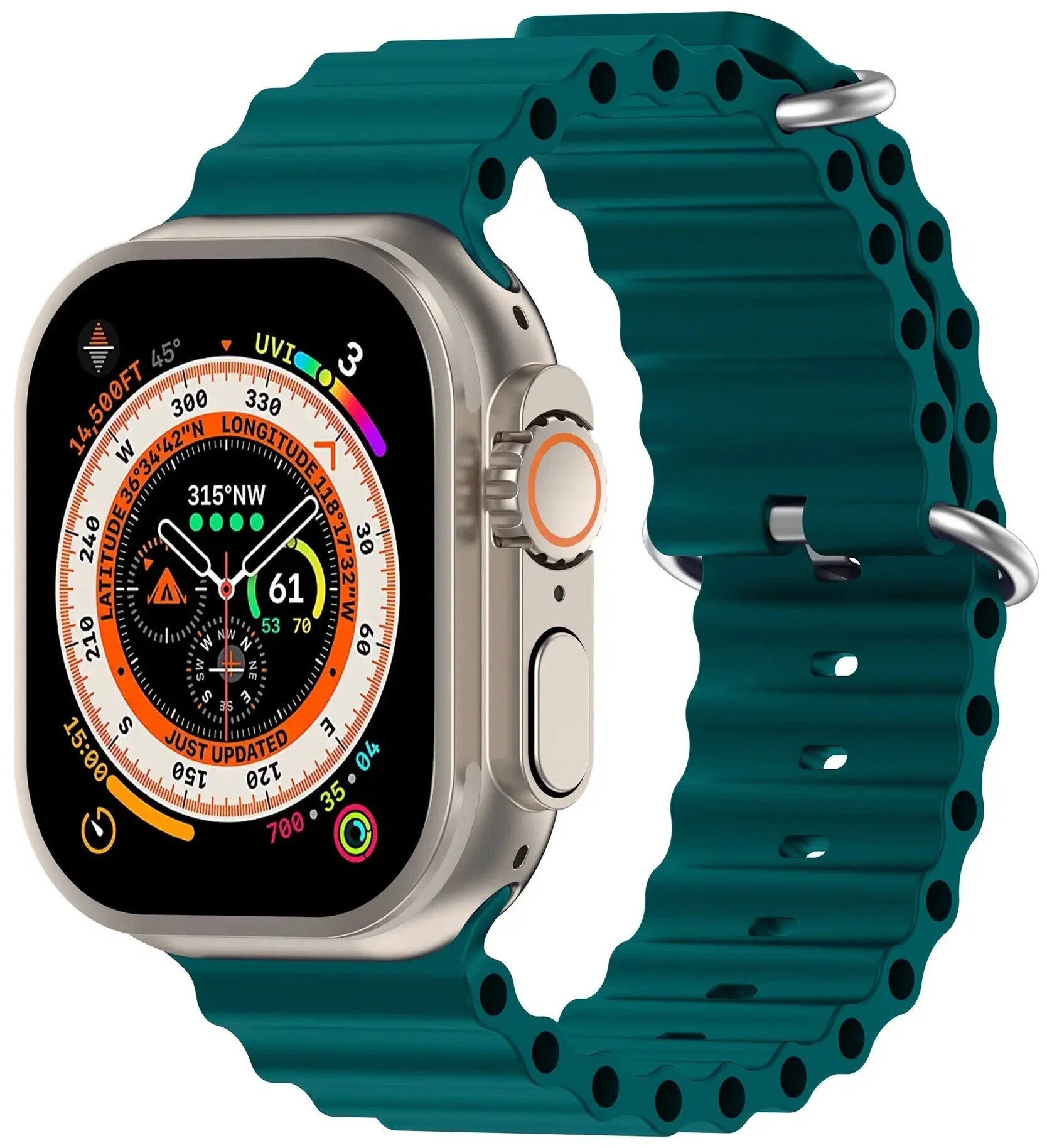 СохранитьРемешок Ocean Band для Apple Watch ULTRA 42-44-45-49mm, Series 1-8, SE, 42/44/45/49mm, зеленый (forest green), рифленый интересное: