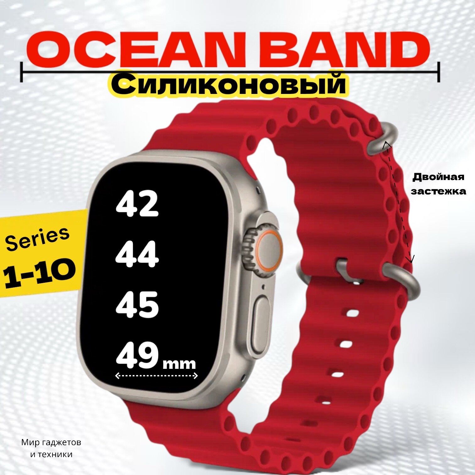 СохранитьРемешок Ocean Band для Apple Watch ULTRA 49mm, Series 1-8, SE, 42/44/45/49mm, красный , Рифленый интересное: