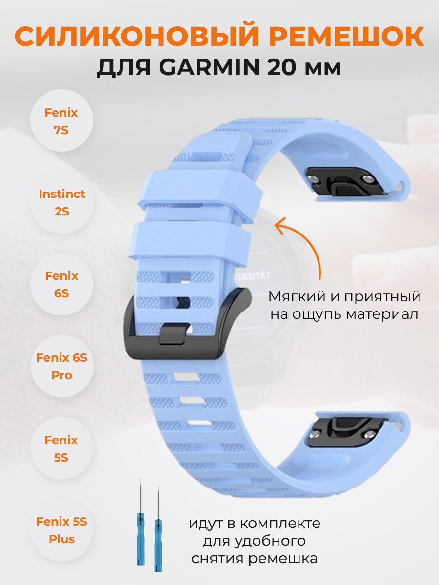Купить Силиконовый ремешок для Garmin Fenix 7S, Instinct 2S, Fenix 6S, Fenix 5S, 20 мм, светло-голубой