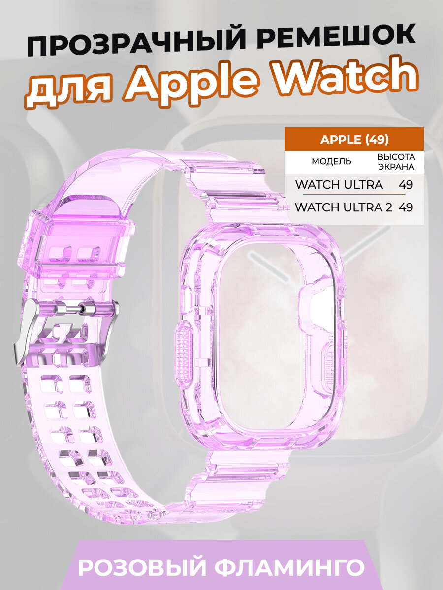 Прозрачный ремешок для Apple Watch ULTRA 49 мм, розовый фламинго интересное: