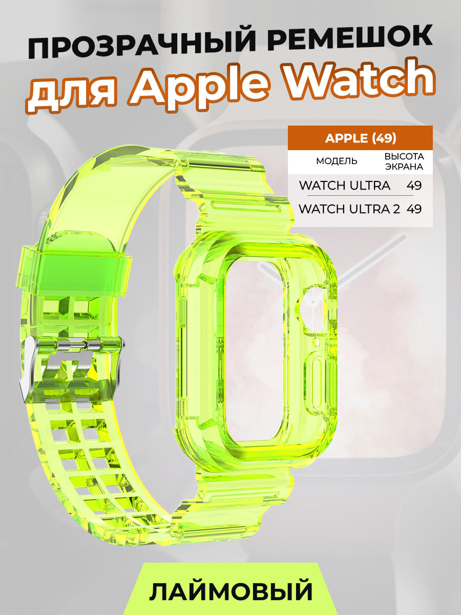 Прозрачный ремешок для Apple Watch ULTRA 49 мм, лаймовый интересное: