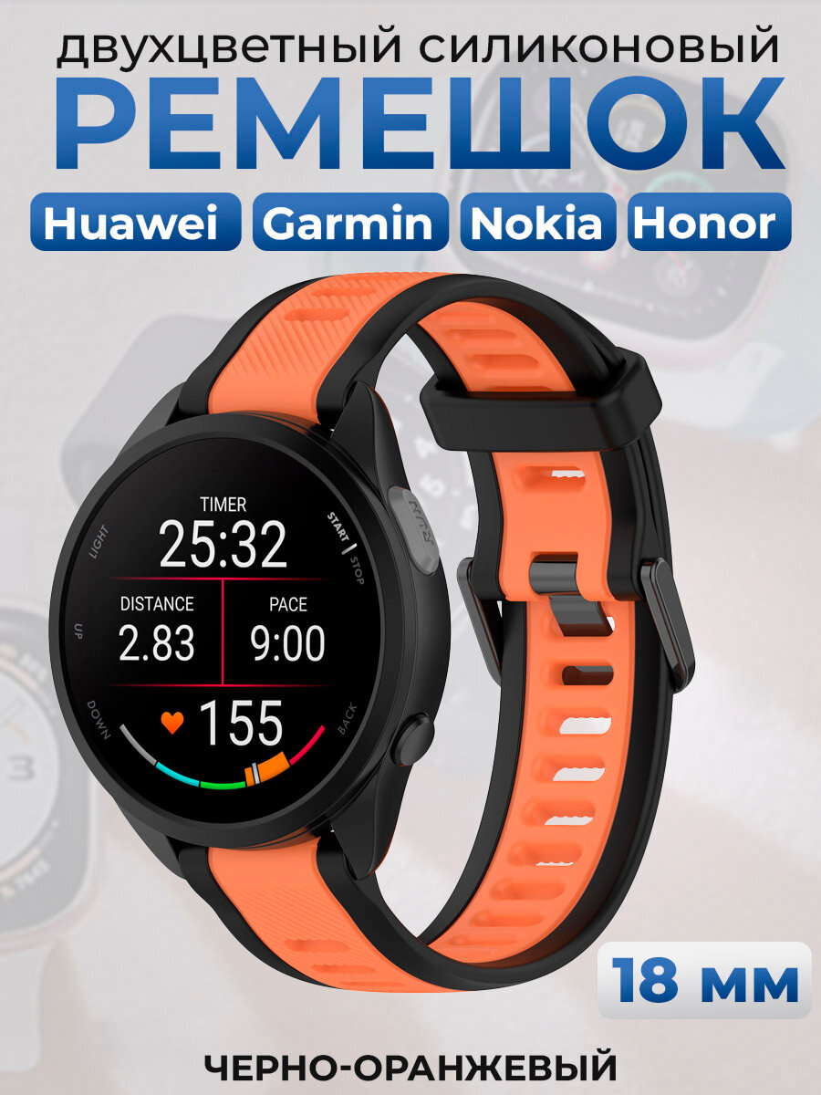 СохранитьДвухцветный силиконовый ремешок для Huawei, Garmin, Nokia, Honor, 18 мм, черно-оранжевый интересное: