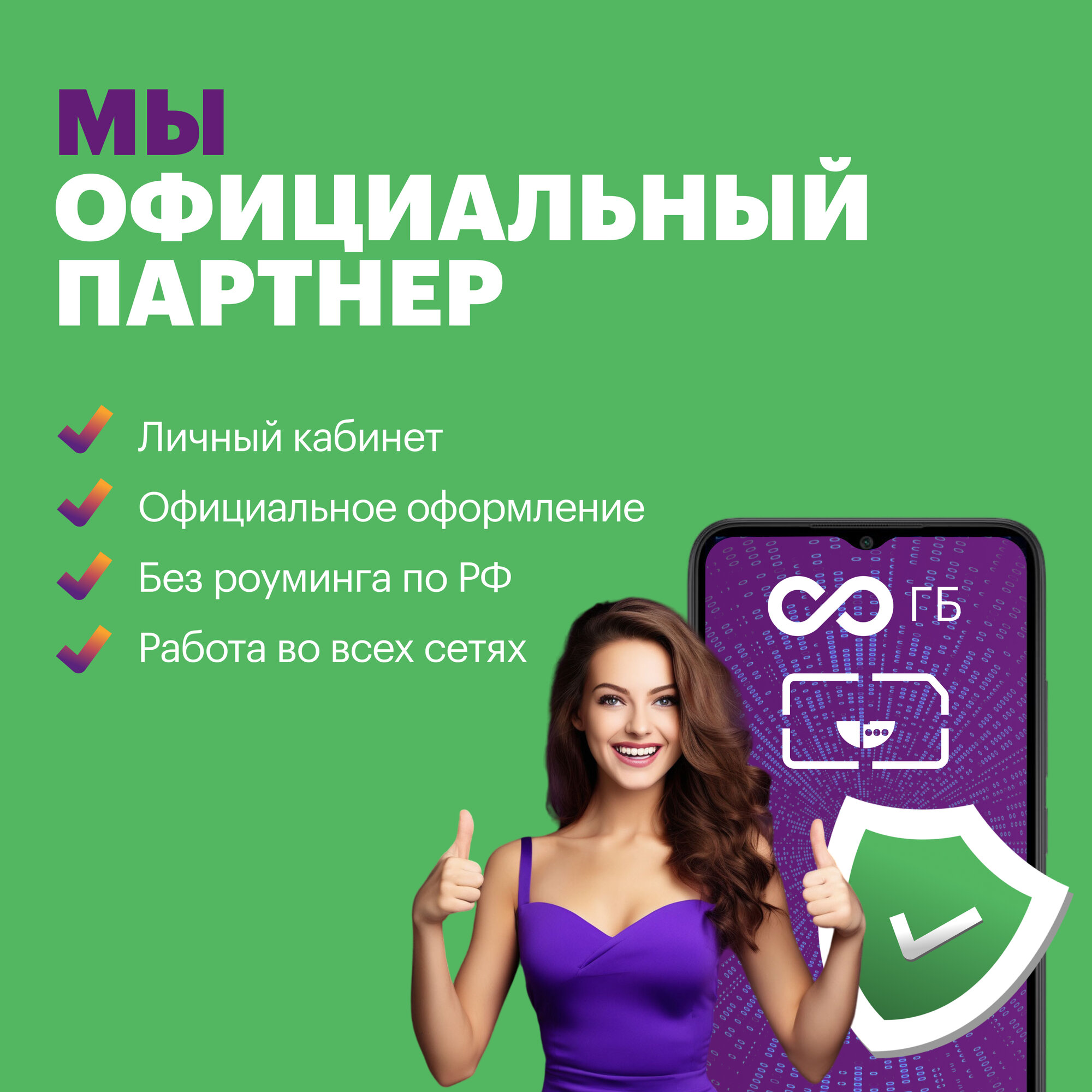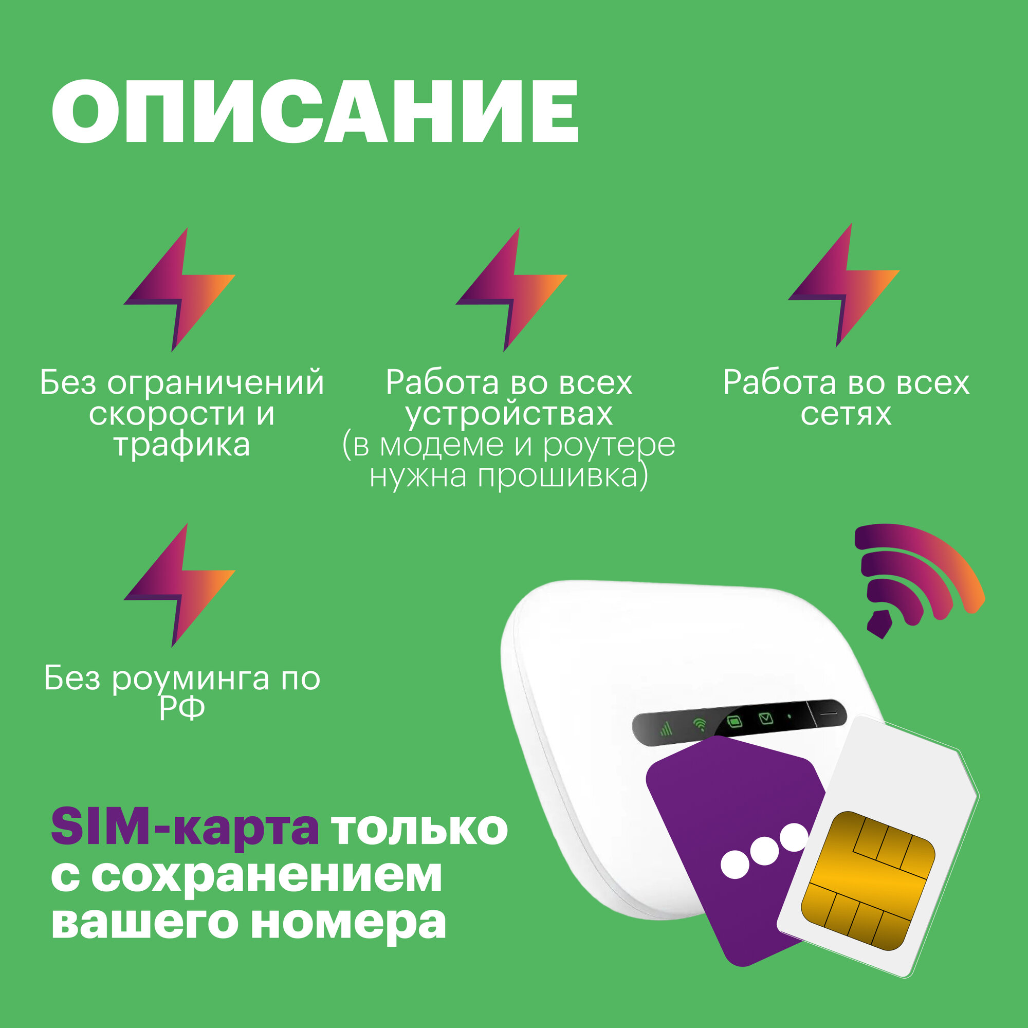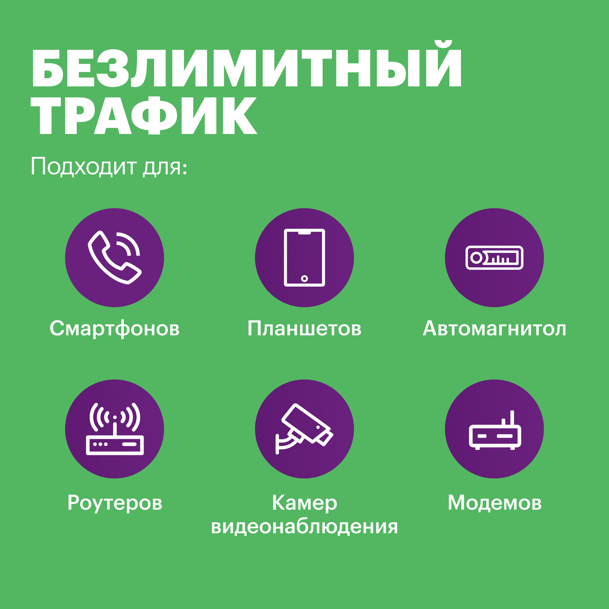 SIM-карта Безлимит по РФ с Wi Fi, для всех устройств, 990 р / в месяц/ сим карта