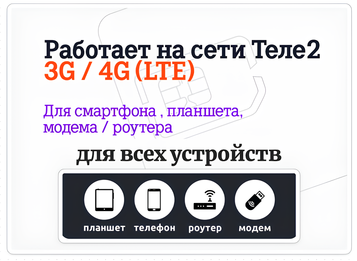 SIM-карта Безлимит по РФ с Wi Fi, для всех устройств, 990 р / в месяц/ сим карта