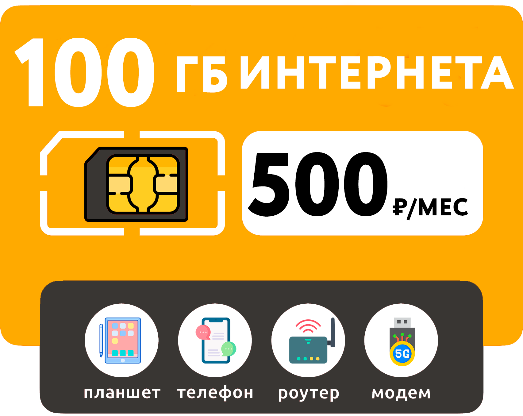 Купить SIM-карта 100 Гб интернета 3G/4G за 500 руб/мес (смартфоны, модемы, роутеры, планшеты) + раздача и торренты (Вся Россия)