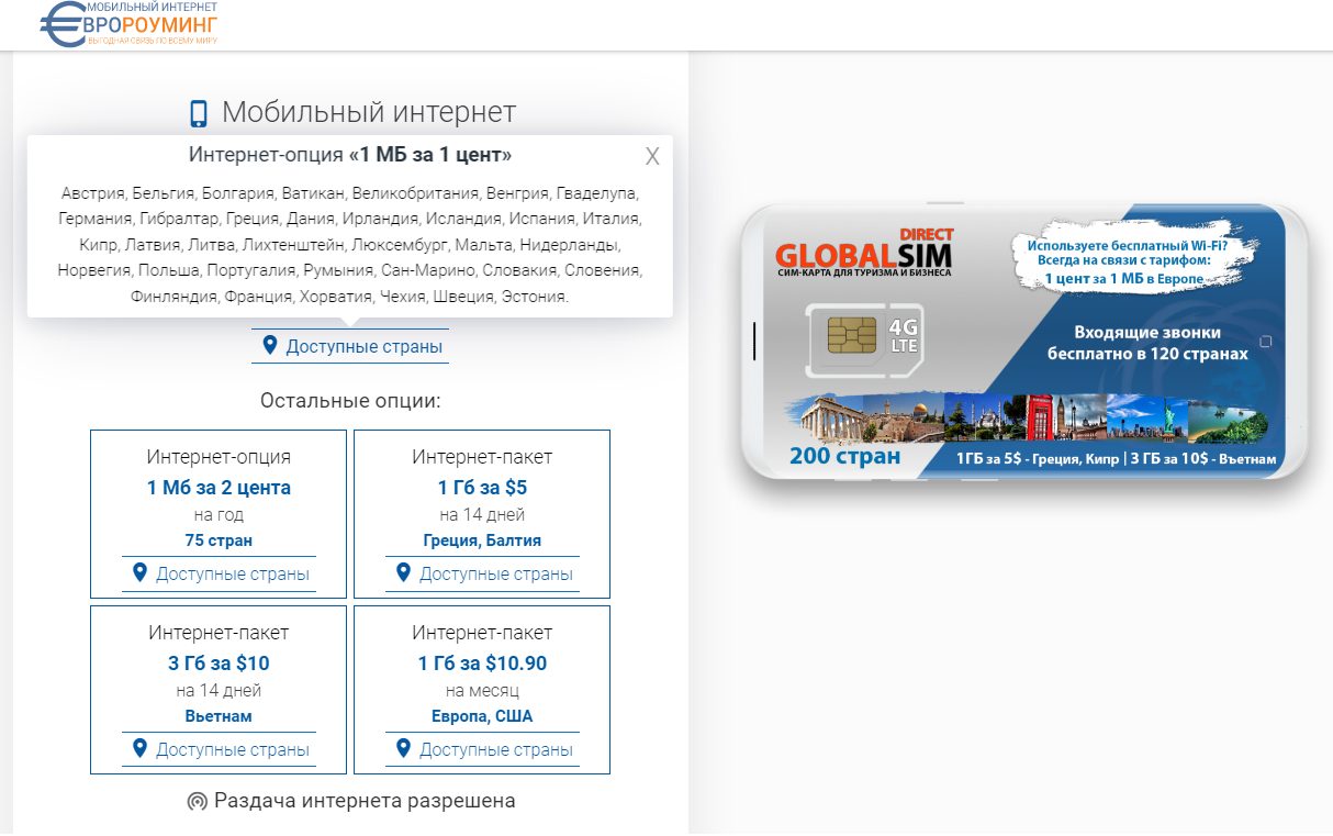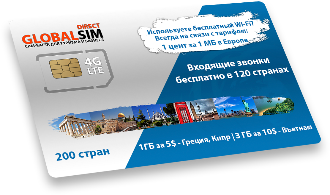 Туристическая сим карта Globalsim – европейский номер: звонки, интернет, SMS за границей -140 стран интересное: