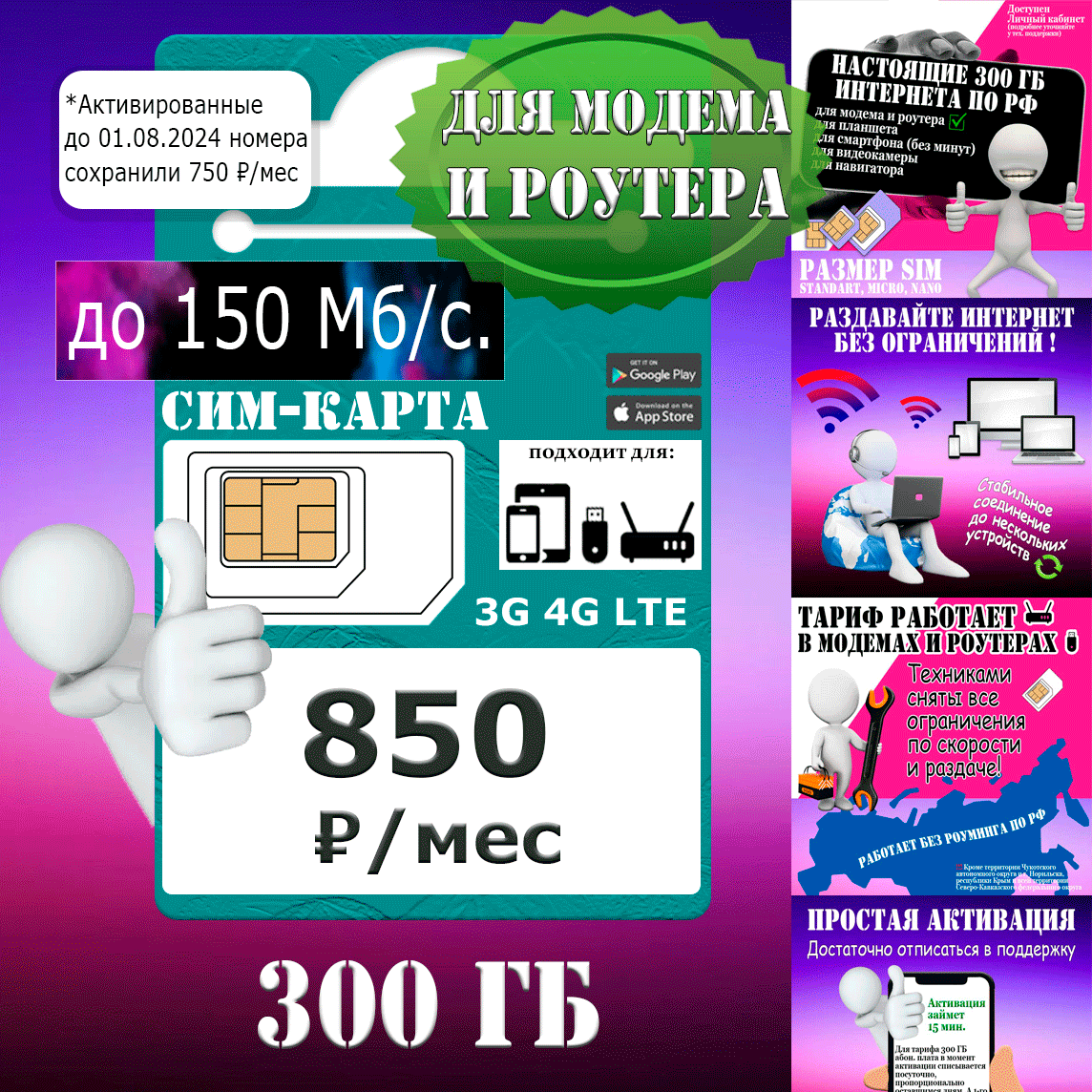 Выгодная sim-карта 300 ГБ интернета для модема и роутера интересное: