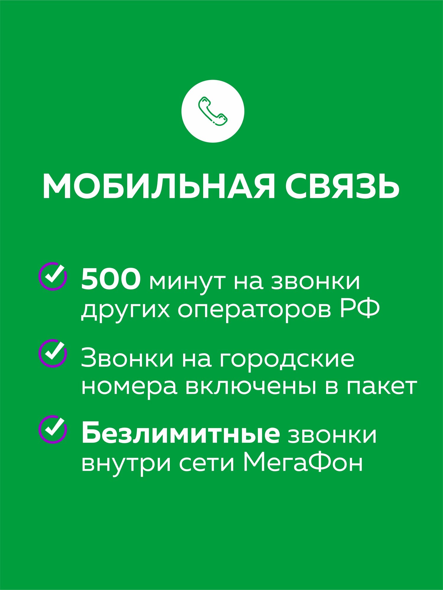 | Количество минут в месяц | 500 мин. |