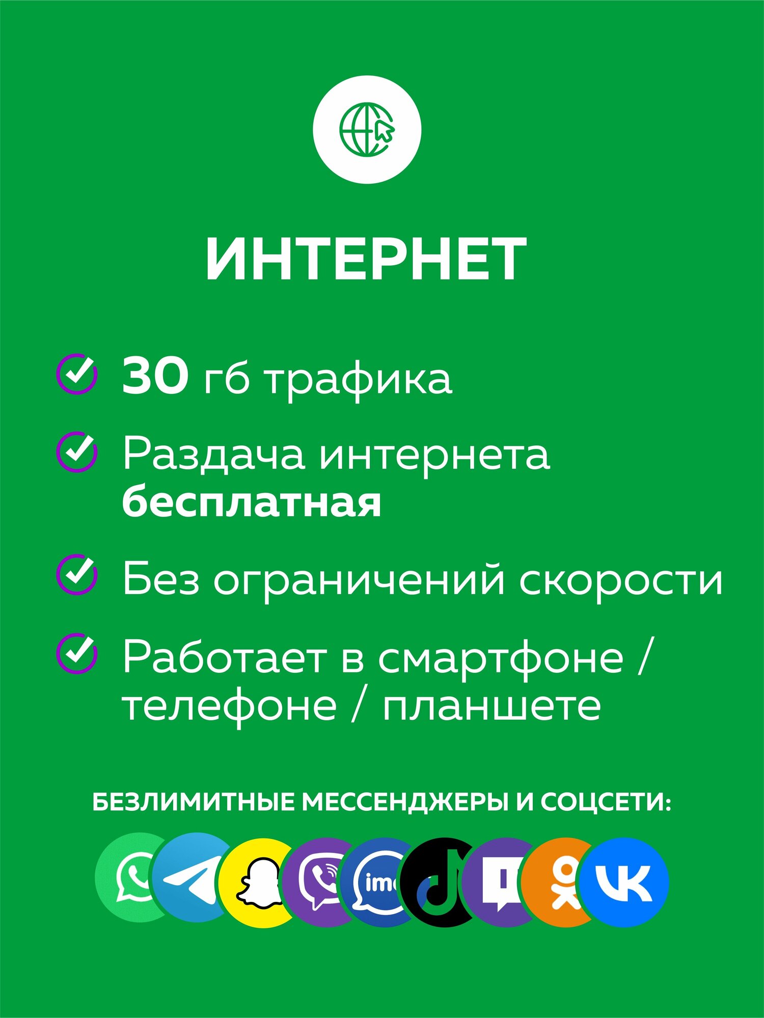 | Количество траффика в месяц | 30 ГБ |