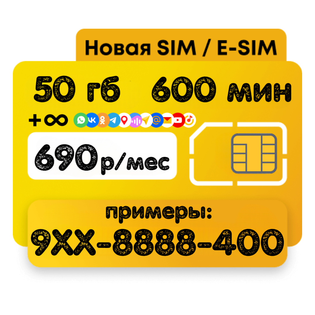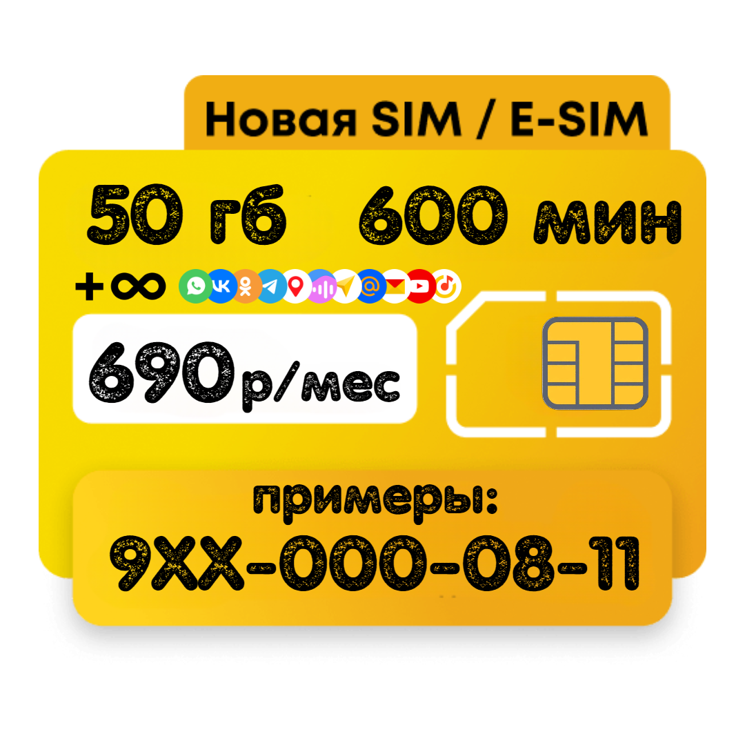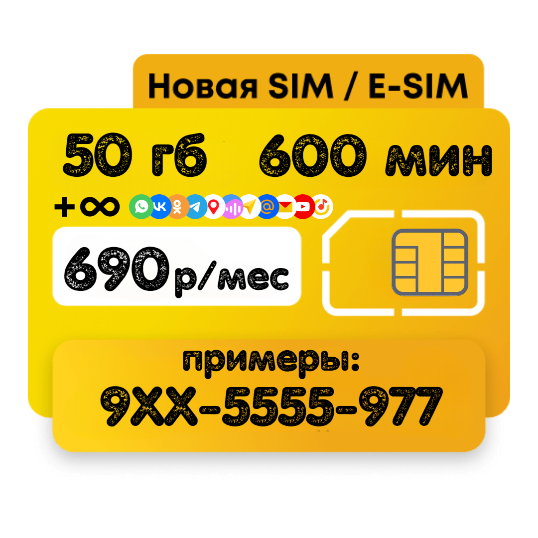 SIM-карта Безлимит по РФ с Wi Fi, для всех устройств, 990 р / в месяц/ сим карта