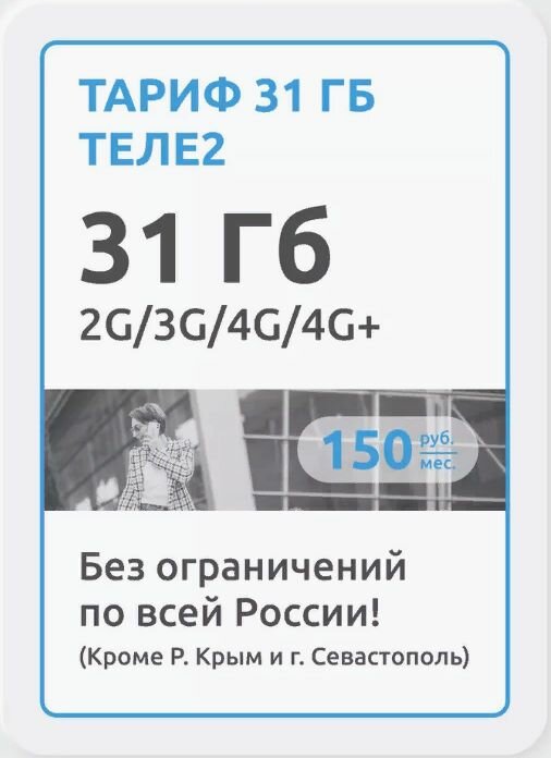Ниже Вы можете прочитать отзывы на Тариф 31 ГБ Теле 2, ознакомится с подробными характеристиками, посмотреть интересные обзоры и фотографии на Тариф 31 ГБ Теле 2.