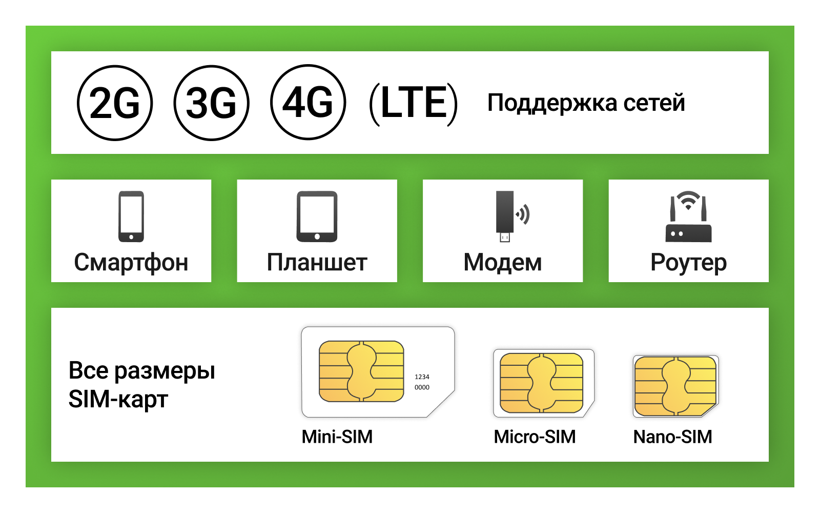 | Тип симкарты | micro-SIM, mini-SIM, nano-SIM |