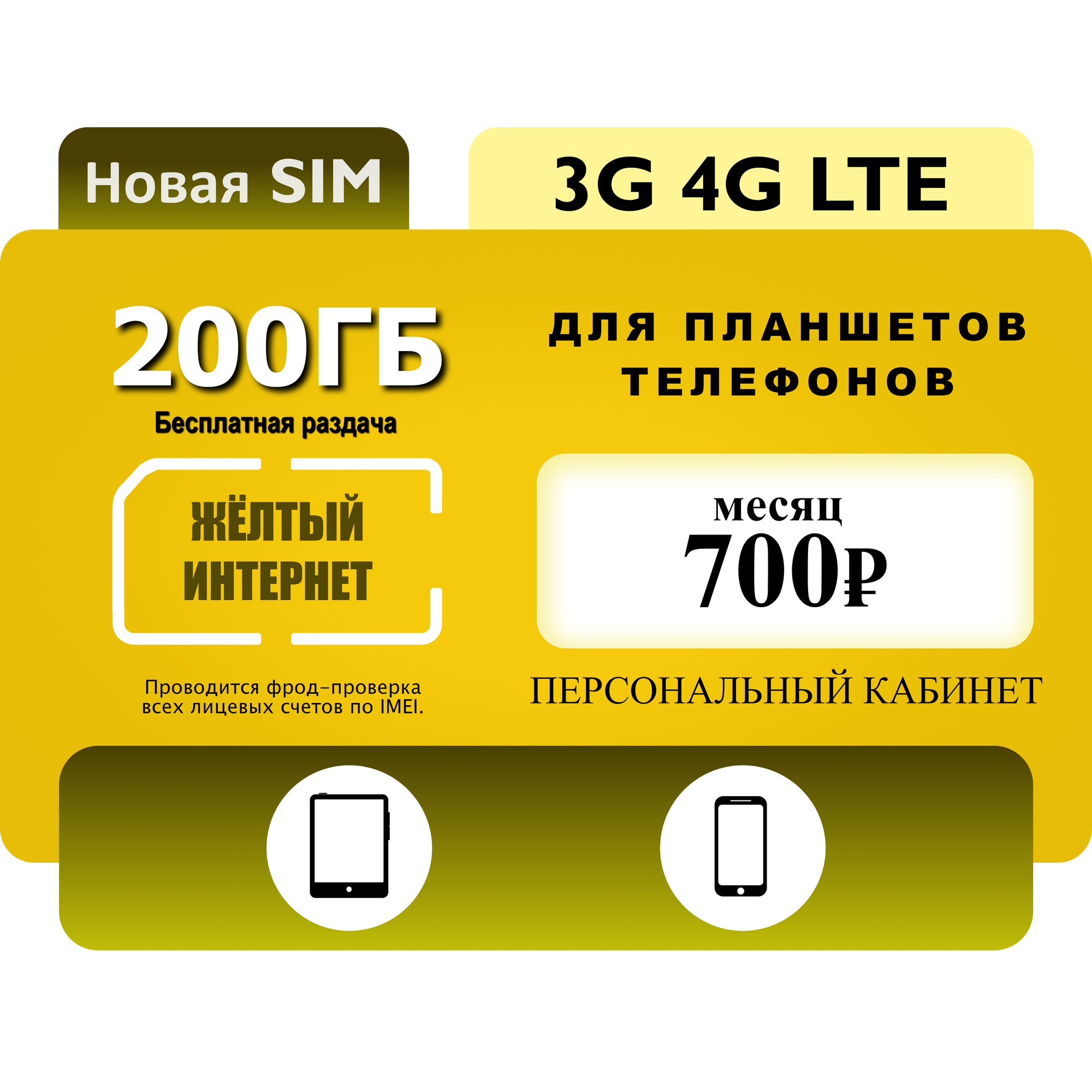 Купить SIM-карта "жёлтый" с 200 Гб интернета для мобильных устройств