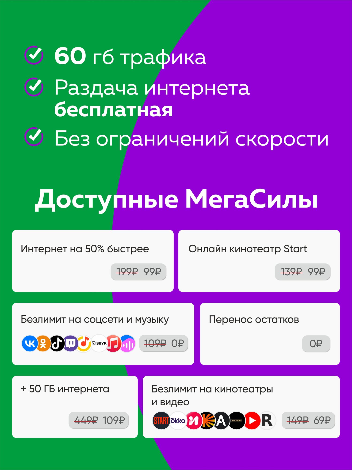 SIM-карта Безлимит по РФ с Wi Fi, для всех устройств, 990 р / в месяц/ сим карта