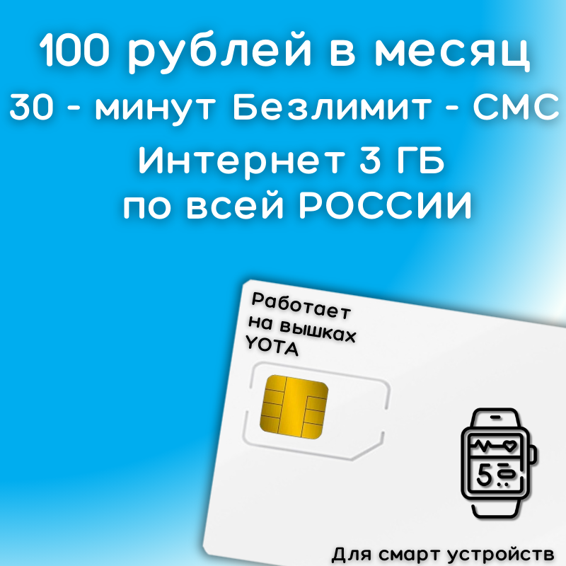 Купить Сим карта интернет для смарт часов и умных устройств 100 рублей в месяц по РФ 3 ГБ 4G LTE YAYOV2