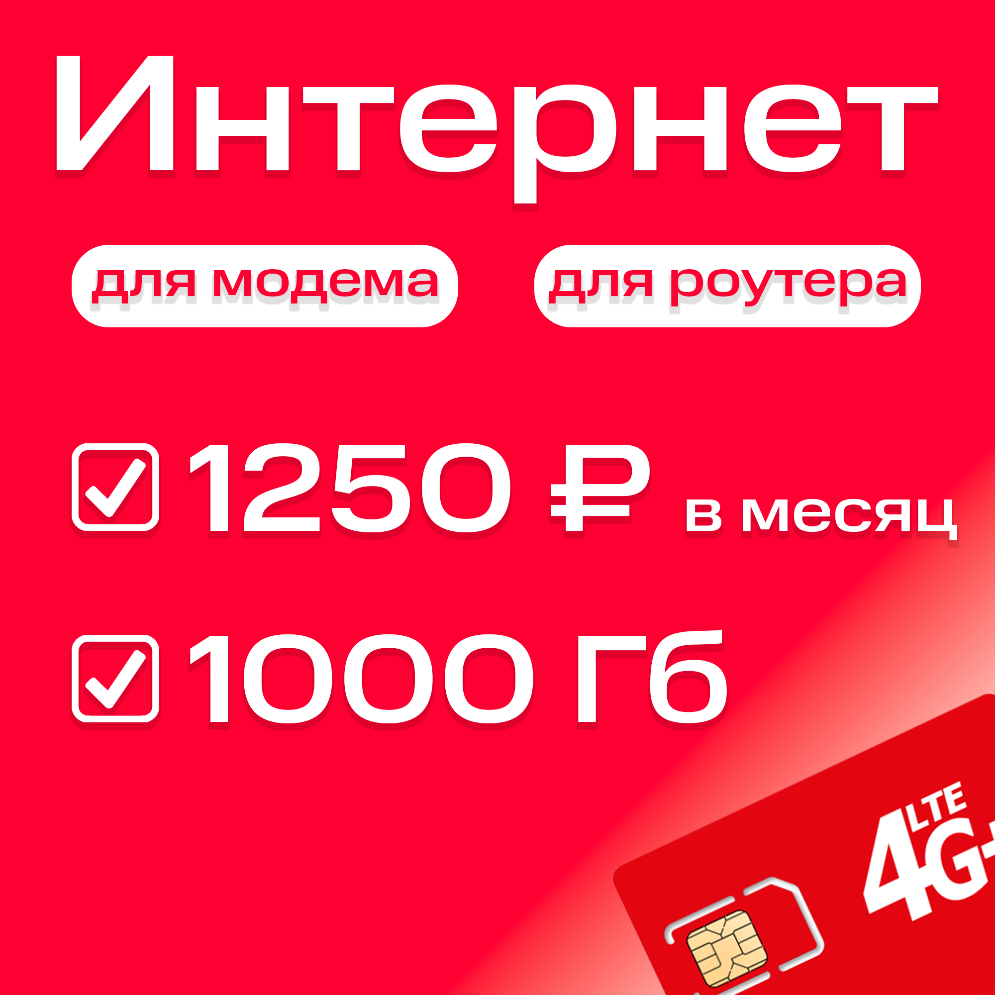 Сим-карта для модема и роутера с практически безлимитным интернетом 3G/4G/4G+ за 1250 ₽ в месяц интересное: