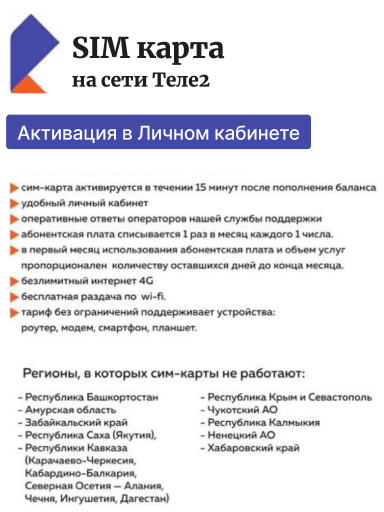 Интернет для модема Т2 5гб АП 120р/мес