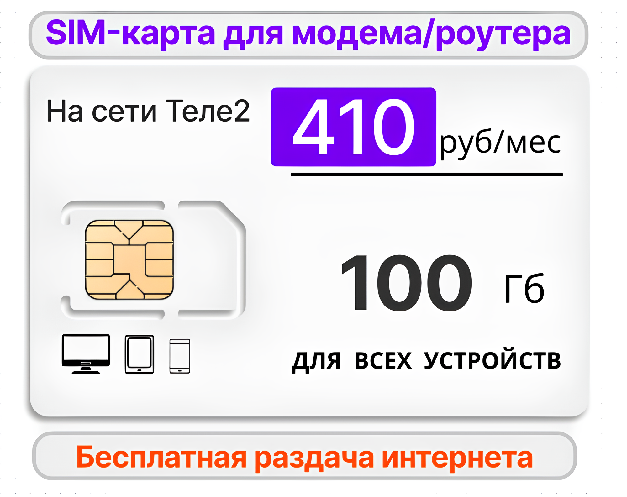 Купить SIM-карта для модема/роутера 100 Гб за 410 руб/мес