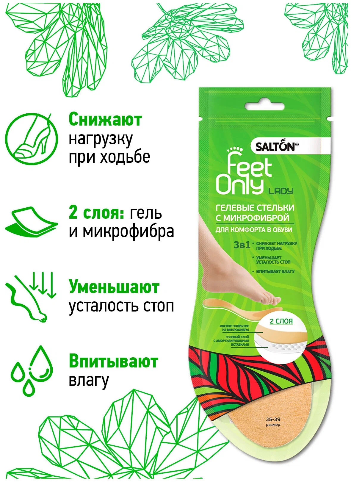 Salton Feet Only Lady Гелевые стельки с микрофиброй, 1 уп