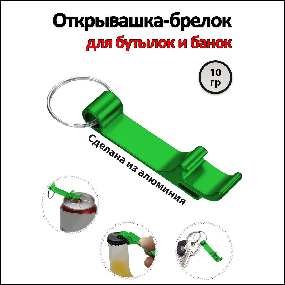 Купить Открывалка-брелок для стеклянных бутылок и жестяных банок & Алюминиевая открывашка для пива и железных баночек. Цвет: Зеленый
