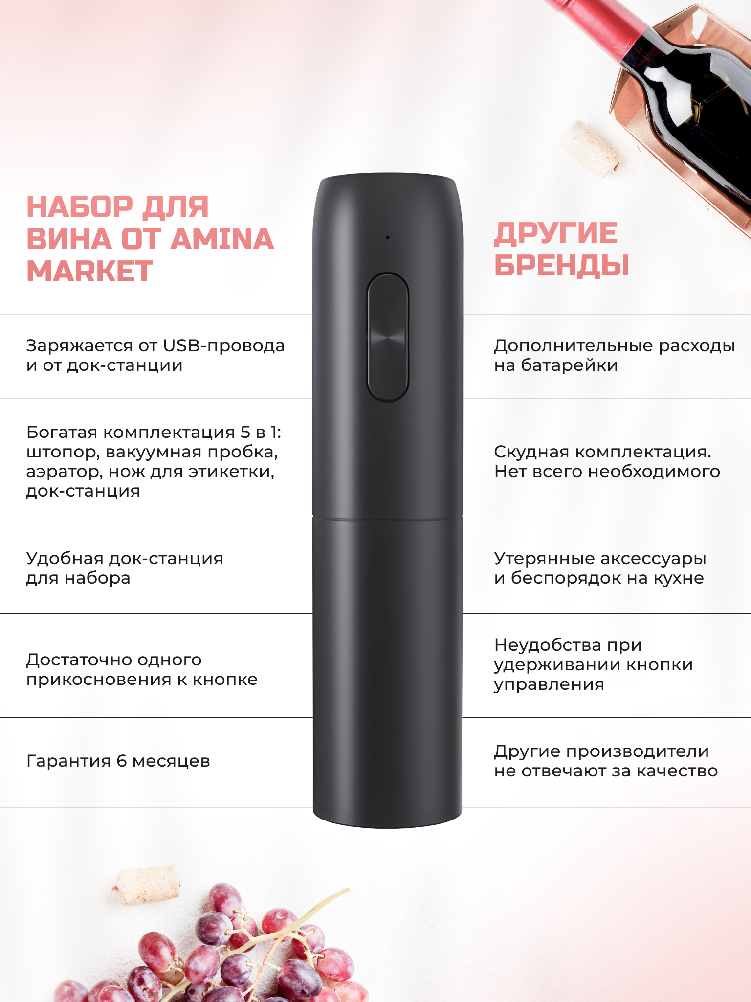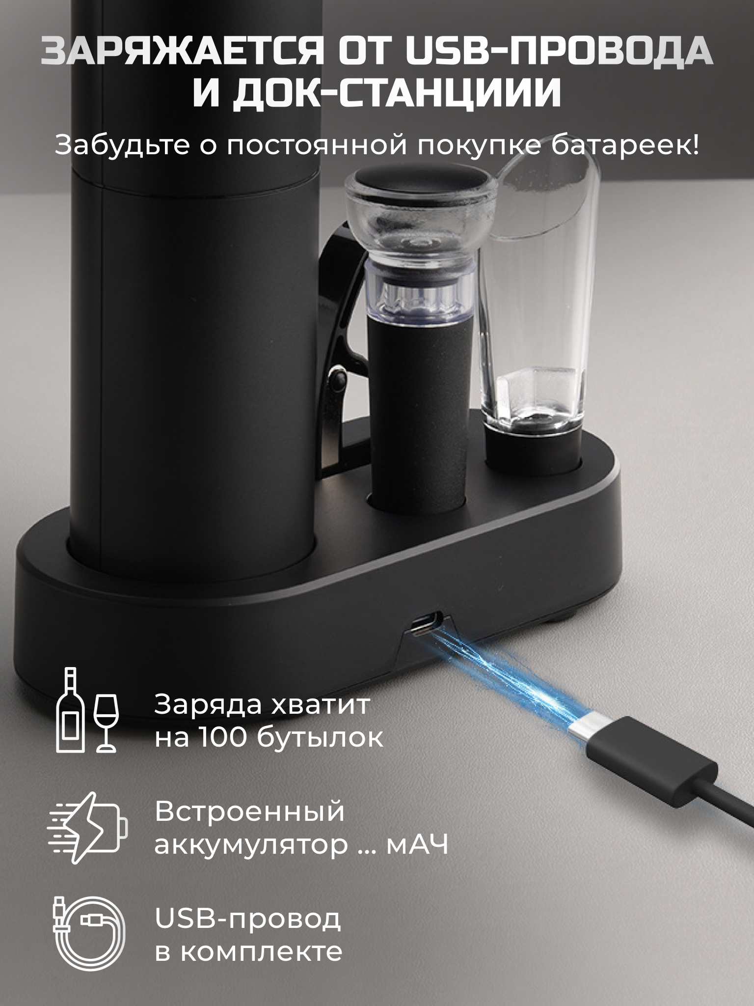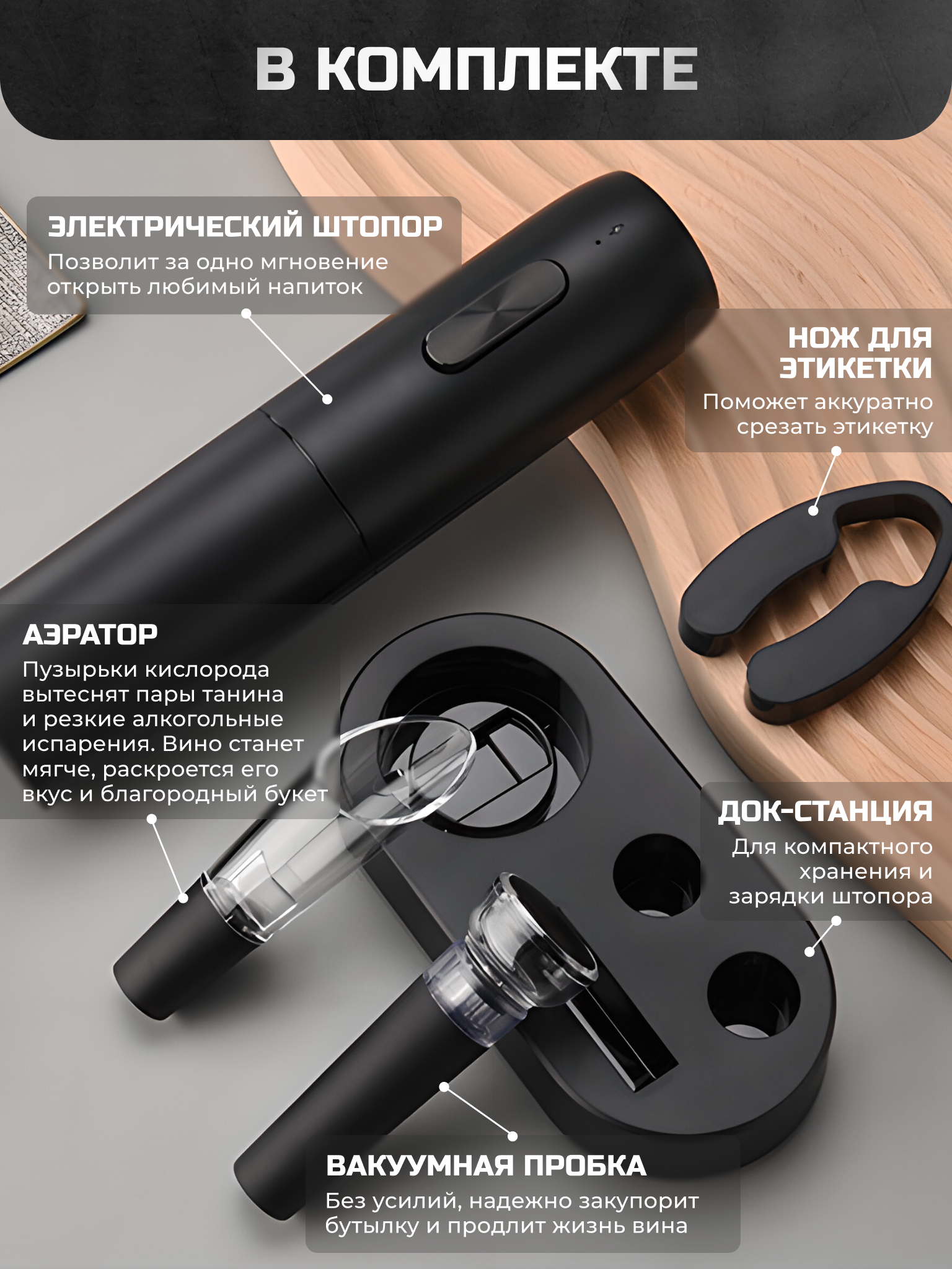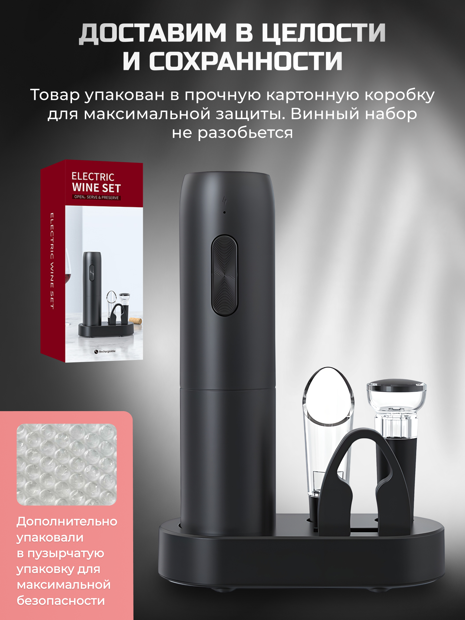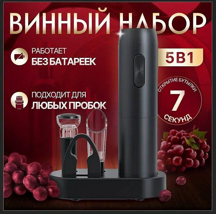 Винный набор, штопор для вина электрический на аккумуляторе, электроштопор, набор для вина интересное: