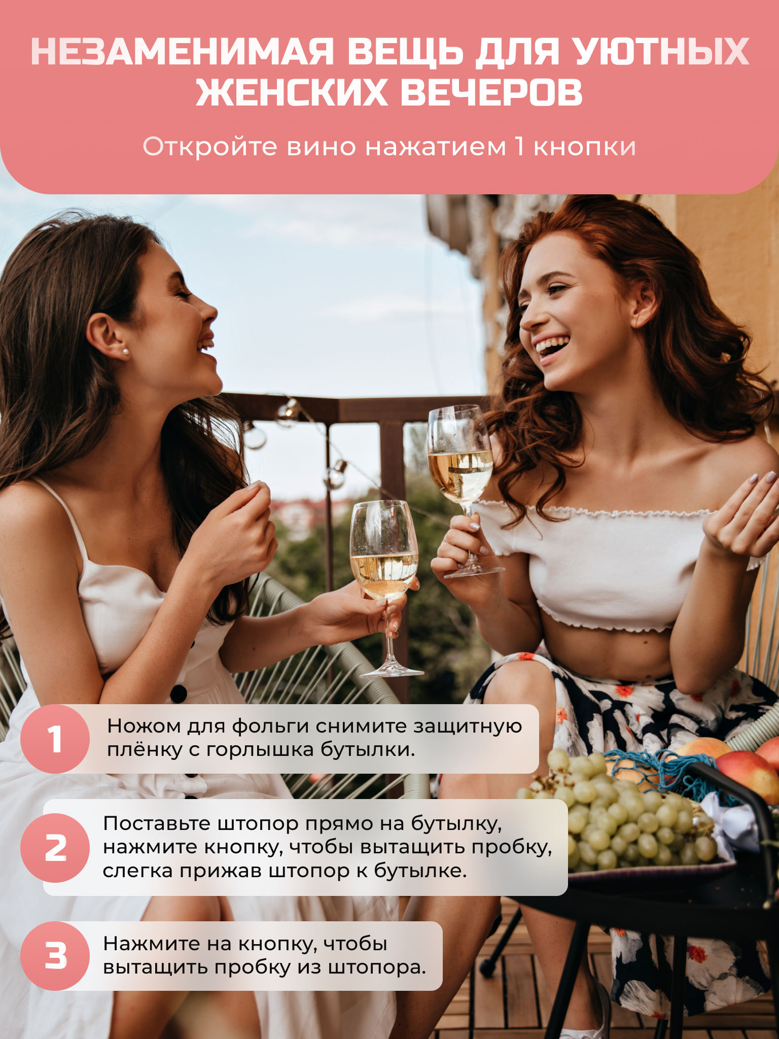| Дополнительная информация | посуда, подарок подруге, штопор, штопор электрический, электроштопор, открывалка, открывашка, подарок на день рождения подруге, подарок другу, штопор для вина, посуда для кухни, аксессуары для напитков, пробка для вина |